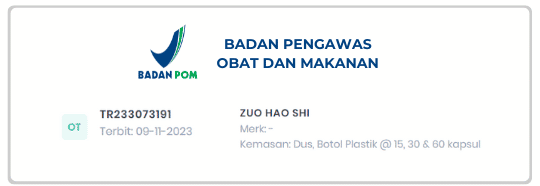 Setiap orang berbeda-beda hasilnya. Tergantung metabolisme tubuh dan pola hidupnya. Zuo Hao Shi sudah terdaftar BPOM RI dan Halal MUI sehingga dijamin keamanannya.